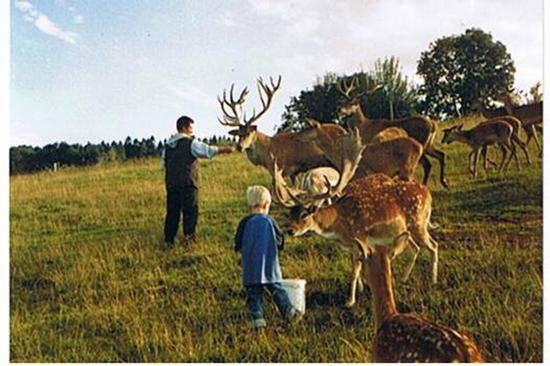 Wildfütterung - Hirsch Heinrich frisst aus der Hand, Ponyreiten, Fütterung unserer Kleintiere, Tischtennisraum mit Dart und Hometrainer, Grillplatz, Spielplatz, Mini-Kneipp-Park